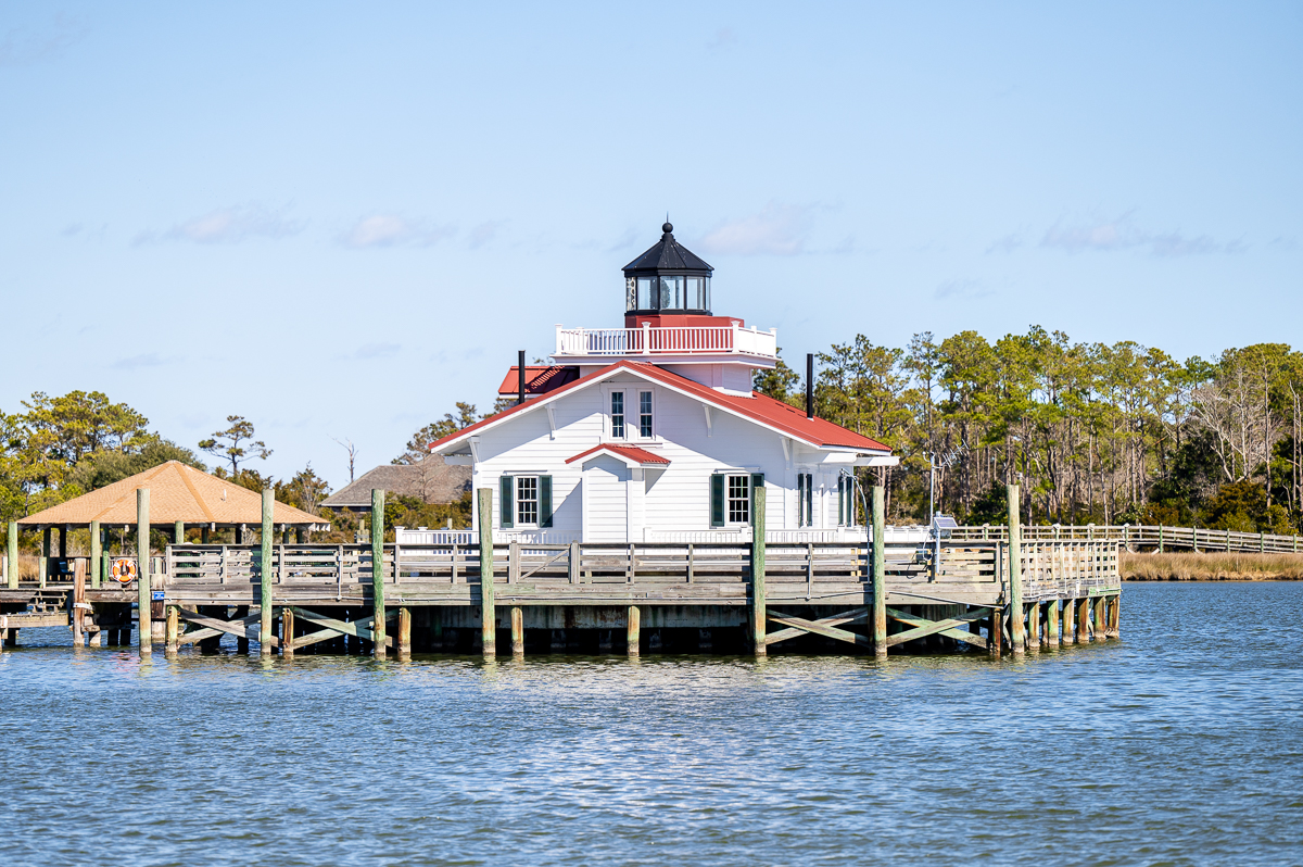 The Roanoke Marshes lighthouse is often overlooked because of its small stature, limited visibility and remote location. Unlike its Outer Banks counterparts, this lighthouse is not an original. Three Roanoke Marshes Lighthouses preceded this replica, completed in 2004. The lighthouse is now operated by the maritime museum and is surely a beautiful beacon representing all that downtown Manteo has to offer.