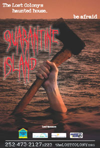 Quarantine Island will be open from 7:30 p.m. to 10:00 p.m. The last tickets for the evening will be sold at 9:30 p.m. Only 300 tickets will be sold each evening. Tickets can be purchased online at www.thelostcolony.org or by calling the administrative offices of the Lost Colony at (252) 473-2127. Children 13 and younger must be accompanied by an adult. Tickets cost $8 if purchased by October 29. $ 10 at the door. Proceeds benefit the Roanoke Island Historical Association and Dare Coalition against Substance Abuse.