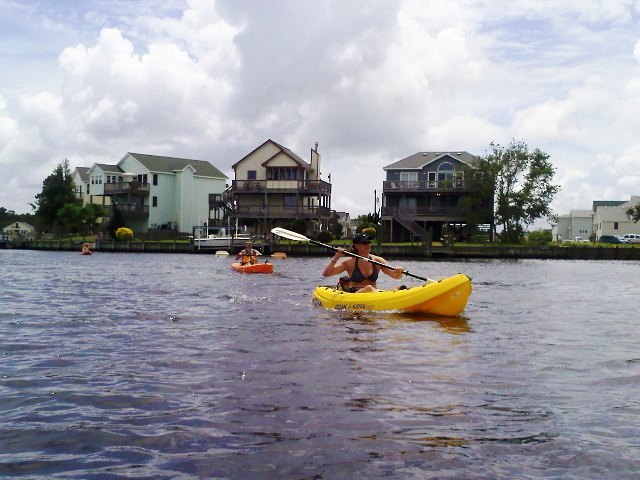 Spend a day (or just a few hours) kayaking on the beautiful Outer Banks and you're sure to have an experience to take home with you. You might even find yourself surrounded by dolphins in Kitty Hawk Bay! Just be sure to kayak with a friend and always use good common sense. For instance, be particularly careful if you find yourself sharing the waterway with boats - when charter boats come rushing into Pirates Cove to show off the catch of the day, they may not pay attention to kayakers.