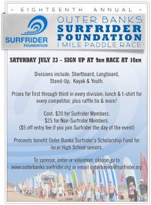 Over 50 competitors will be competing in the 18th Annual Surfrider Foundation Paddle Race this Saturday, July 23 in the Outer Banks of North Carolina.